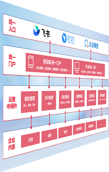 对协作平台提供支持服务,,支持企业应用与协作平台对接,,,,包含组织同步、、消息集成、、、待办集成等。。支持目前主流的协作平台:钉钉、、、企微和飞书。。。。